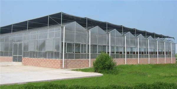 采用熱鍍鋅鋼制骨架,覆蓋材料為5mm鋼化玻璃,透光率在九十以上。溫室大棚頂部及四周為專用鋁型材。溫室大棚頂部為雙向開窗,齒輪齒條副傳動。根據用戶需要,溫室大棚兩個端面可安裝濕簾和風機,也可在兩個端面及側面安裝鋁型材推拉窗、平開窗或外翻窗。