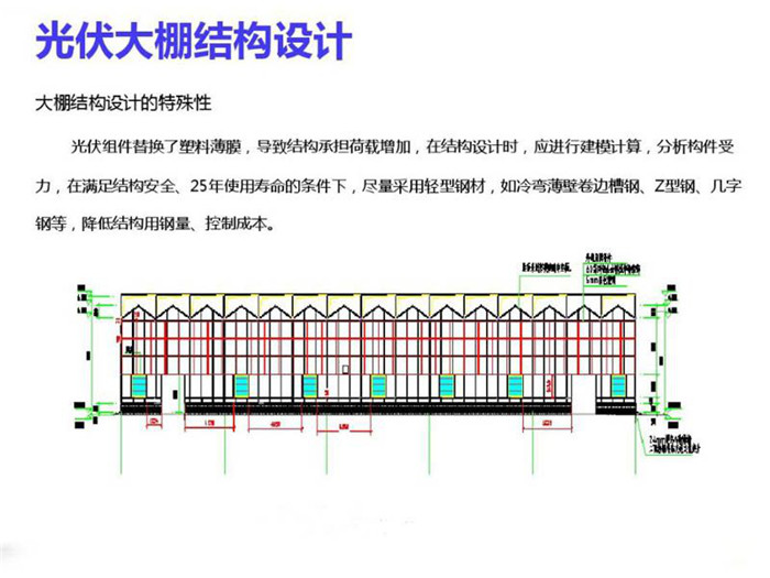 光伏農業大棚是集太陽能光伏發電、智能溫控系統、現代高科技種植為一體的溫室大棚,大棚采用鋼制骨架,上覆蓋太陽能光伏組件,同時保證太陽能光伏發電和整個溫室大棚農作物的采光需求。太陽能光伏所發電量,可以支持大棚的灌溉系統,對植物進行補光、解決溫室大棚冬季供暖需求,提高大棚溫度,促使農作物快速生長。