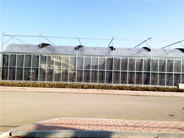 采用熱鍍鋅鋼制骨架,覆蓋材料為5mm鋼化玻璃,透光率在九十以上。溫室大棚頂部及四周為專用鋁型材。溫室大棚頂部為雙向開窗,齒輪齒條副傳動。根據(jù)用戶需要,溫室大棚兩個端面可安裝濕簾和風(fēng)機,也可在兩個端面及側(cè)面安裝鋁型材推拉窗、平開窗或外翻窗。